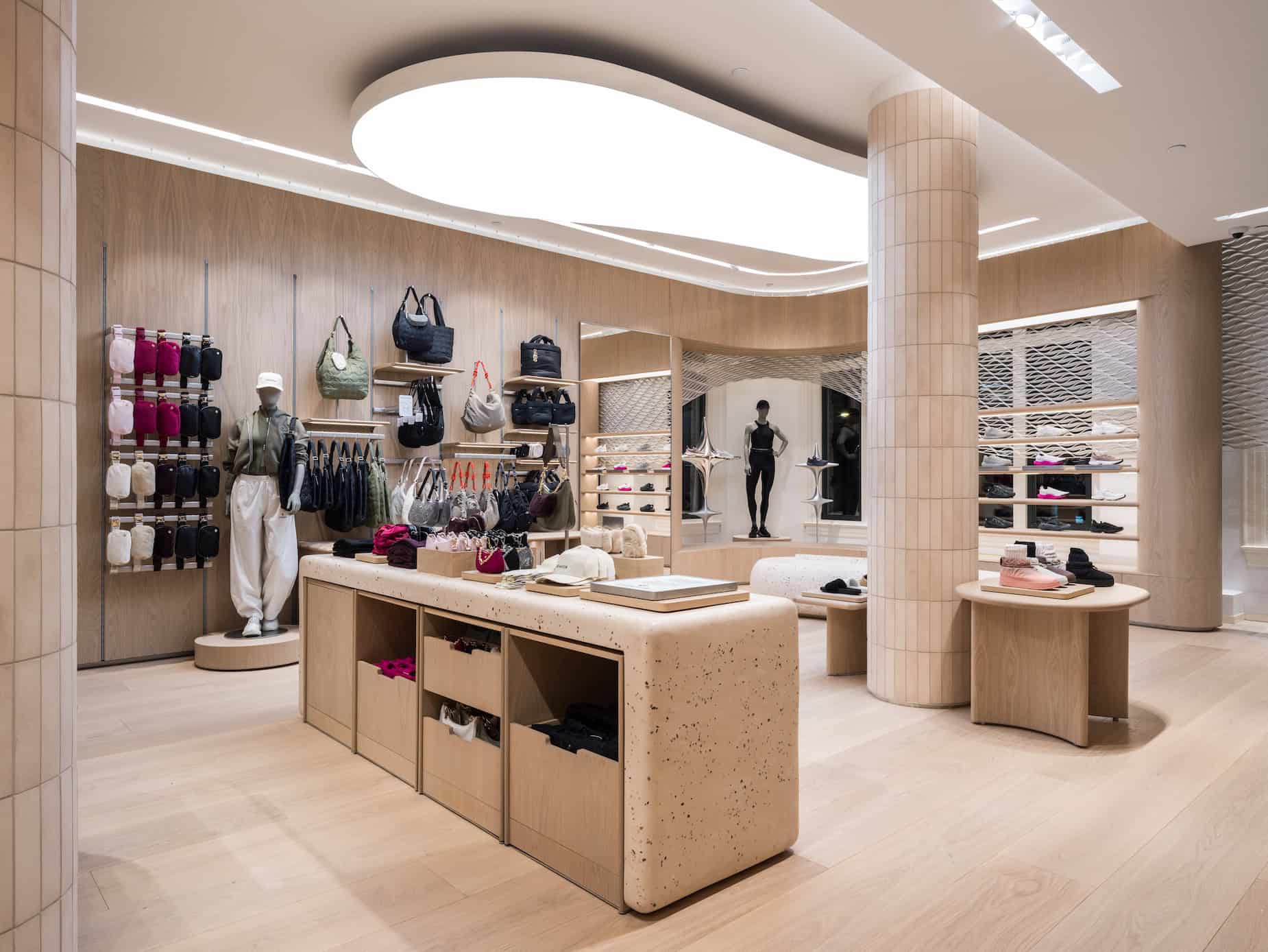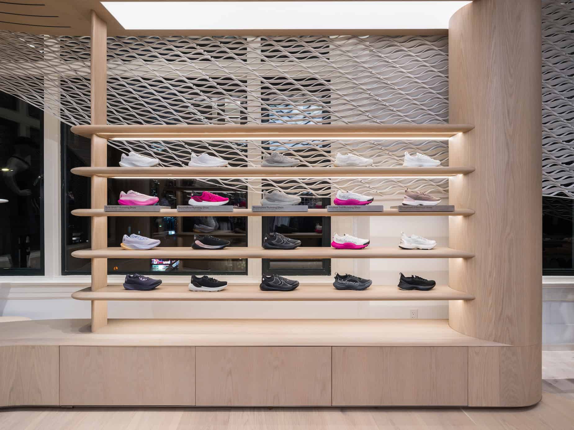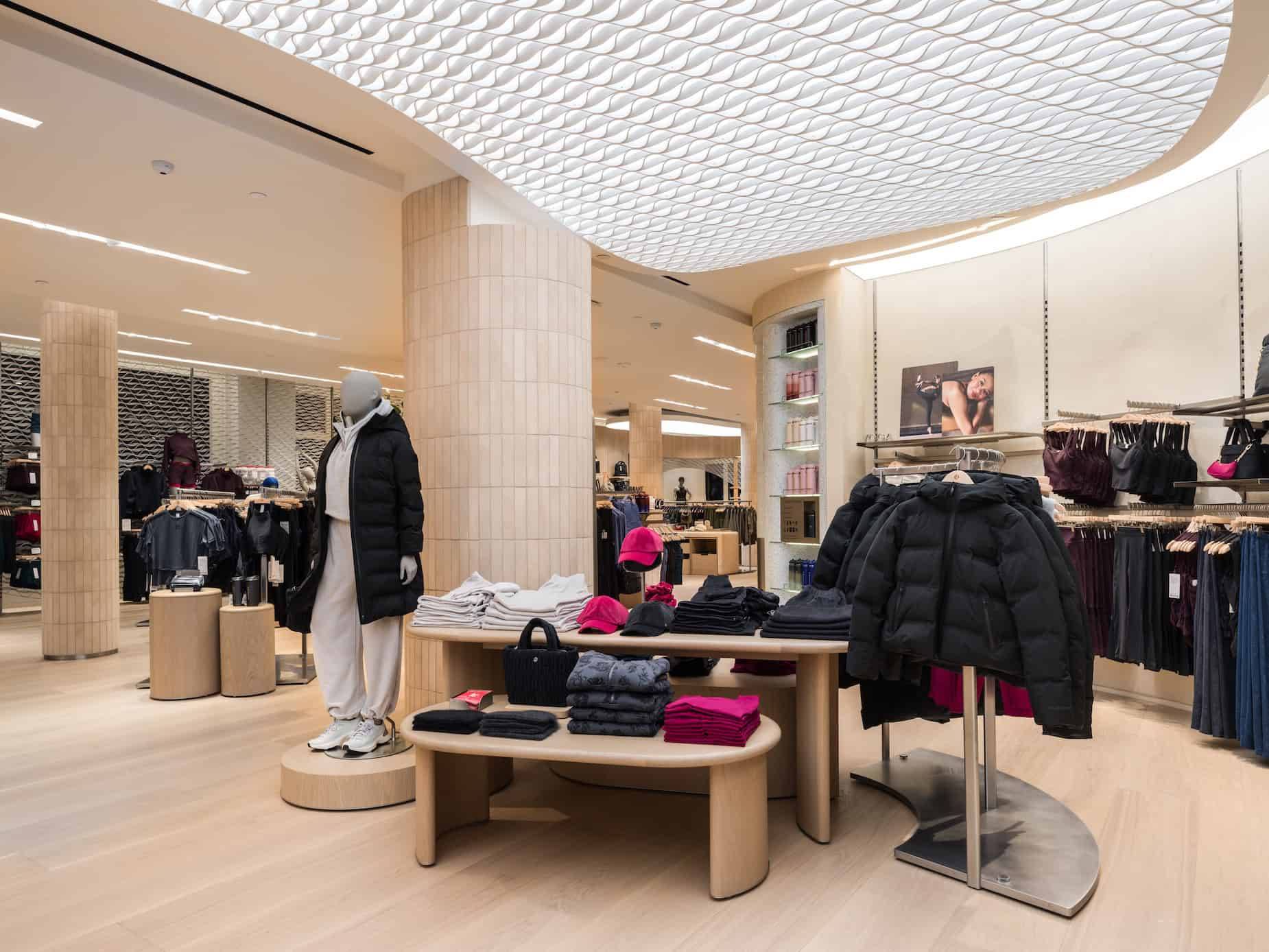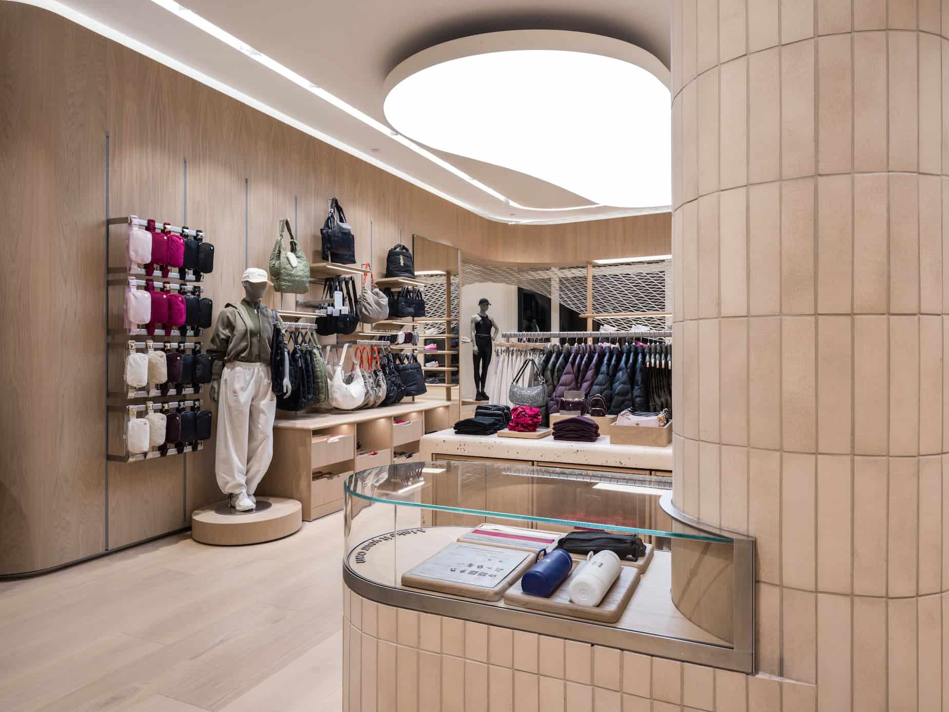 Lululemon set out to push beyond its existing retail standards, introducing new material expressions, refined detailing, and large-scale sculptural fixtures.