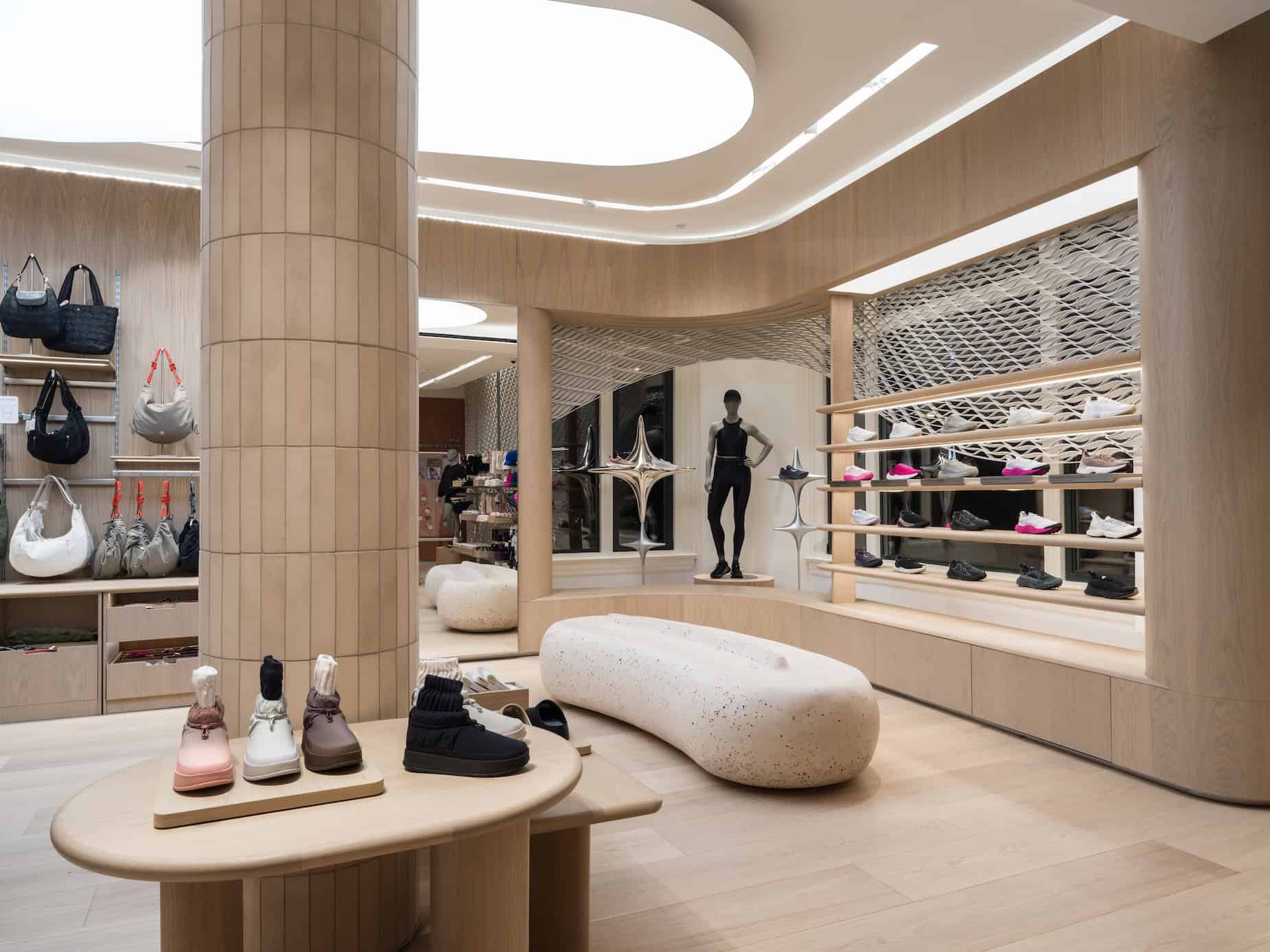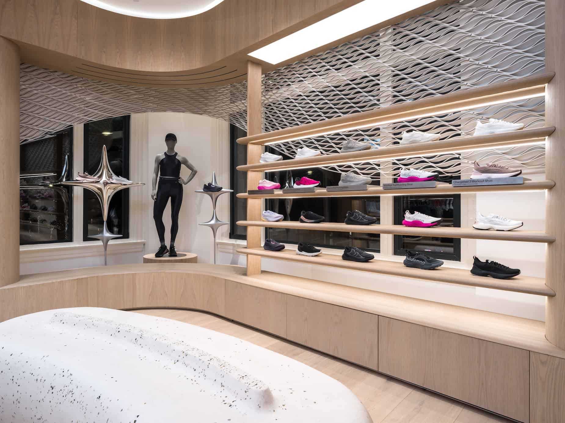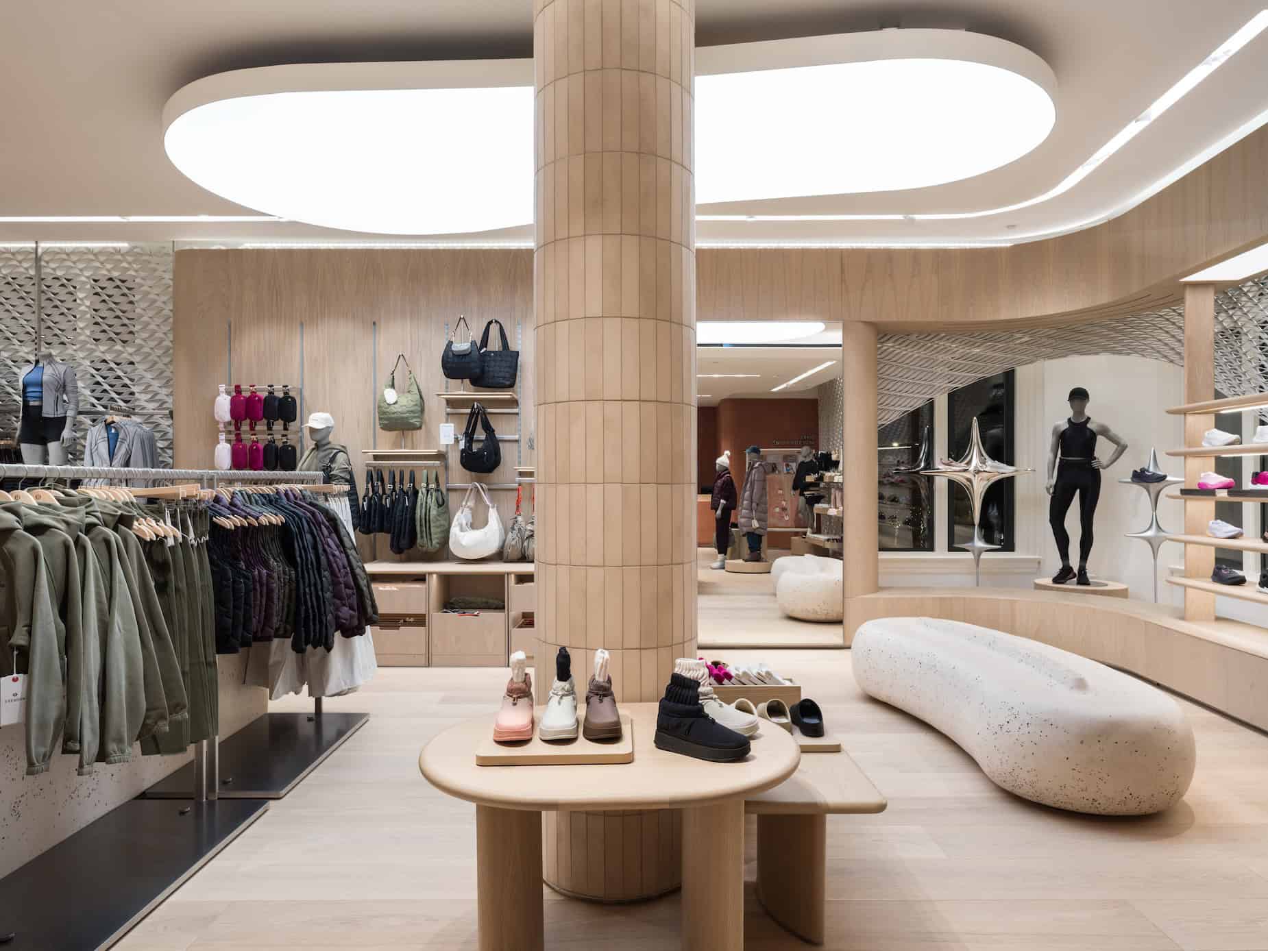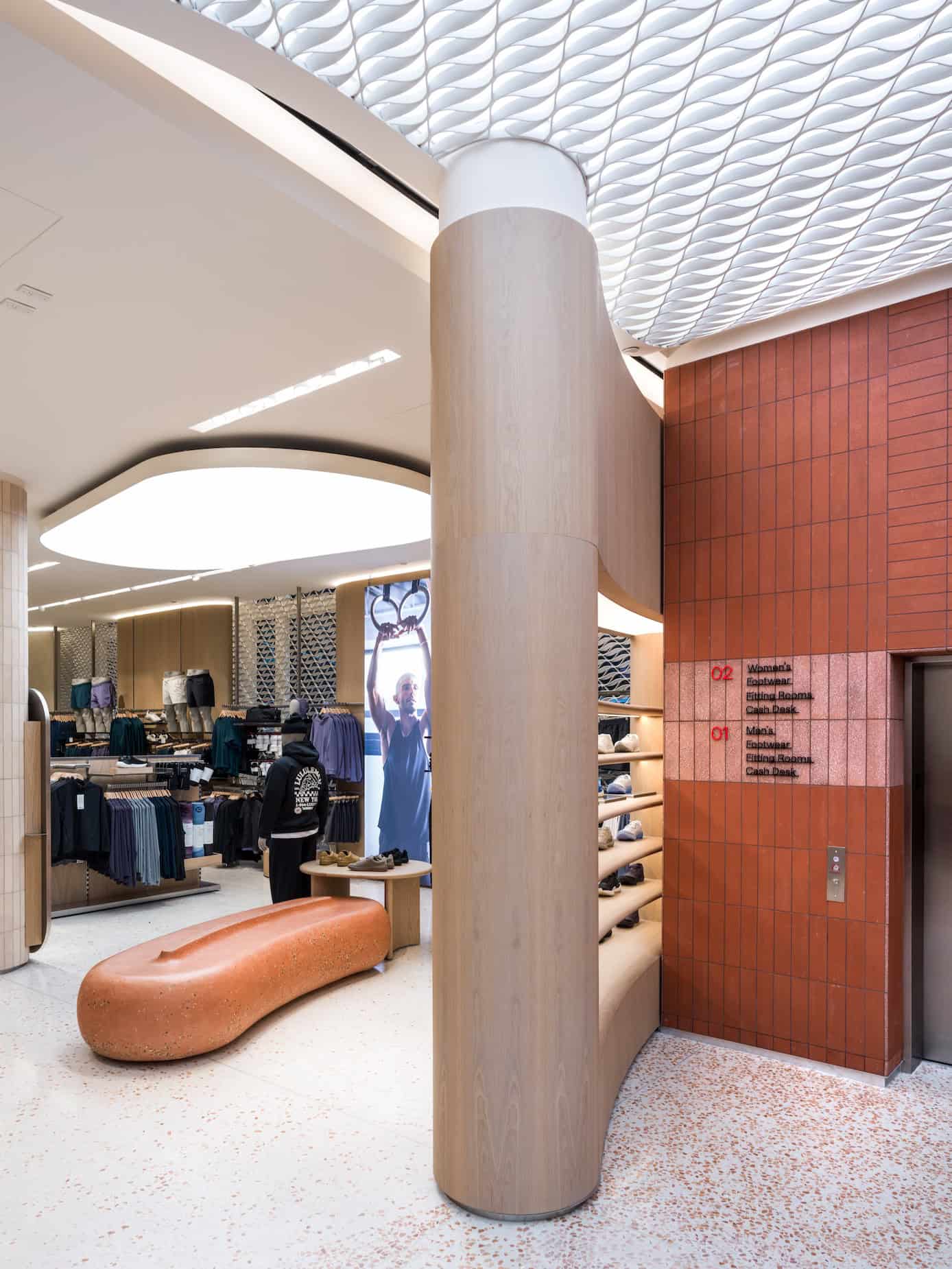 Lululemon set out to push beyond its existing retail standards, introducing new material expressions, refined detailing, and large-scale sculptural fixtures.