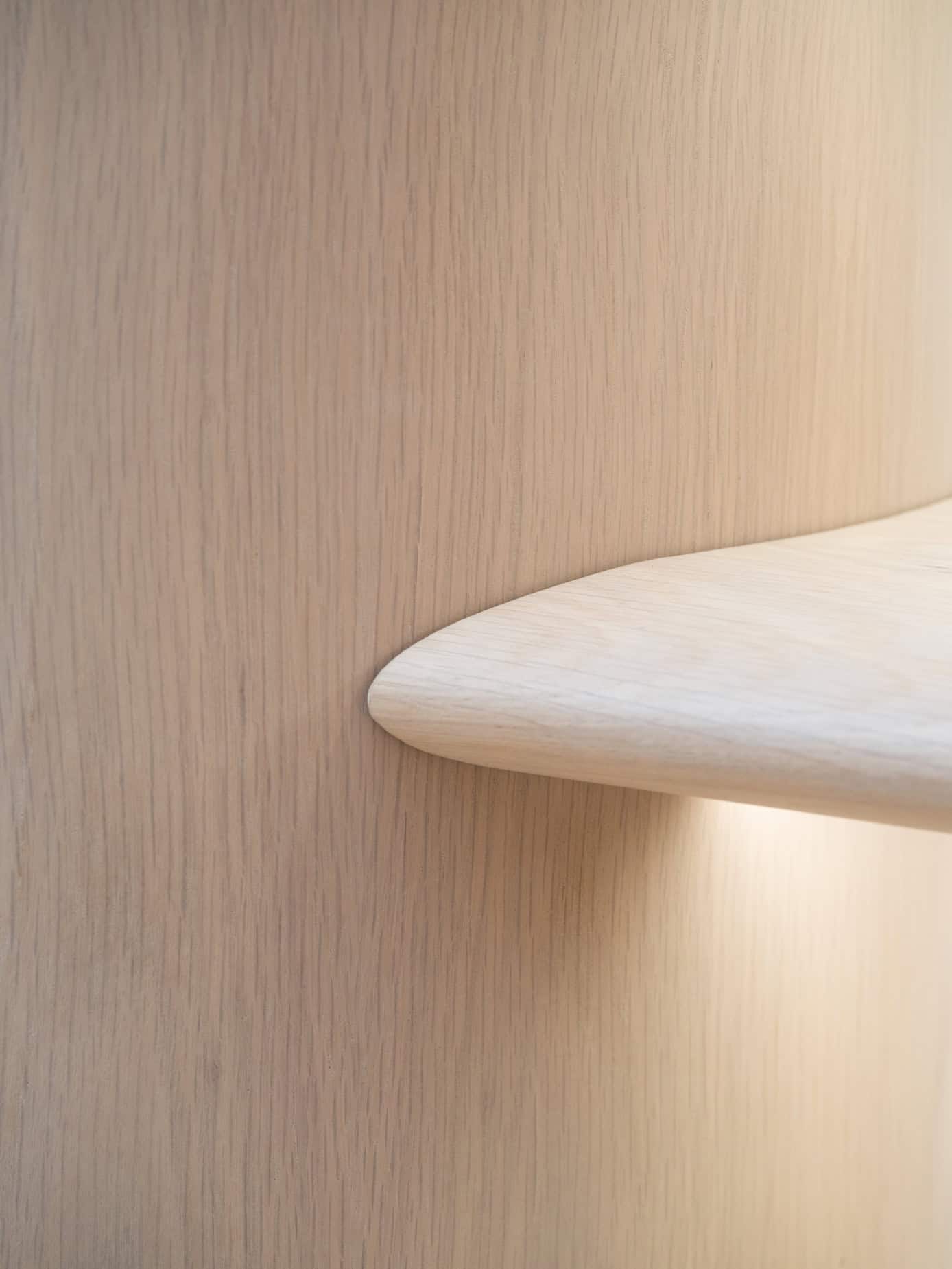 • Curved, long-span shelving with concealed internal steel reinforcement